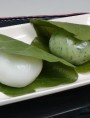 端午の節句には欠かせないかしわ餅です。よもぎはつぶあん・白はこしあんを包んでいます。